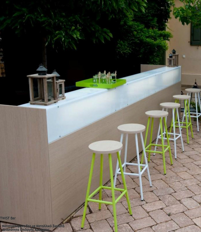 Portable bar for events. Robust construction with industrial castors for easy movement and store.